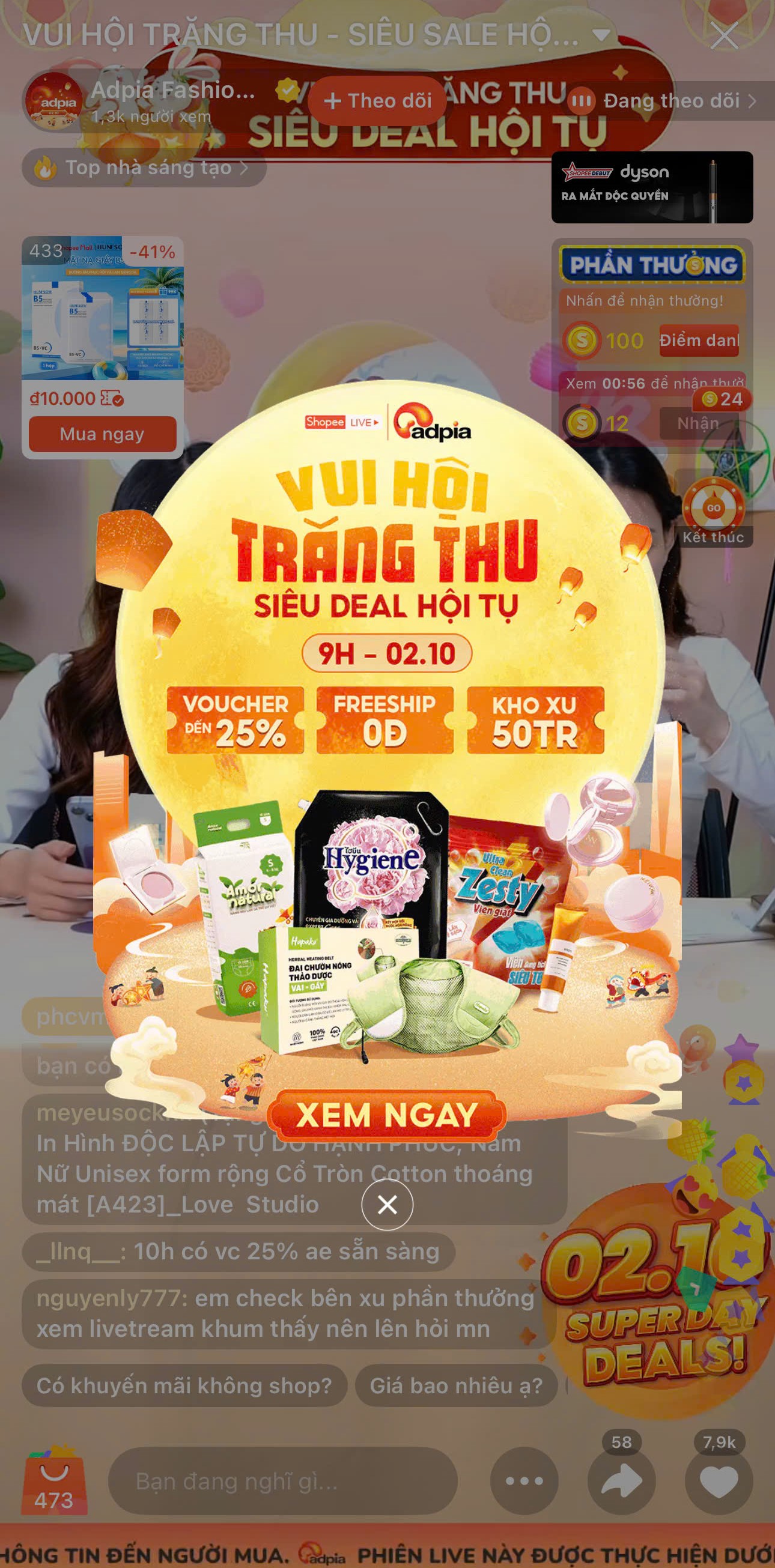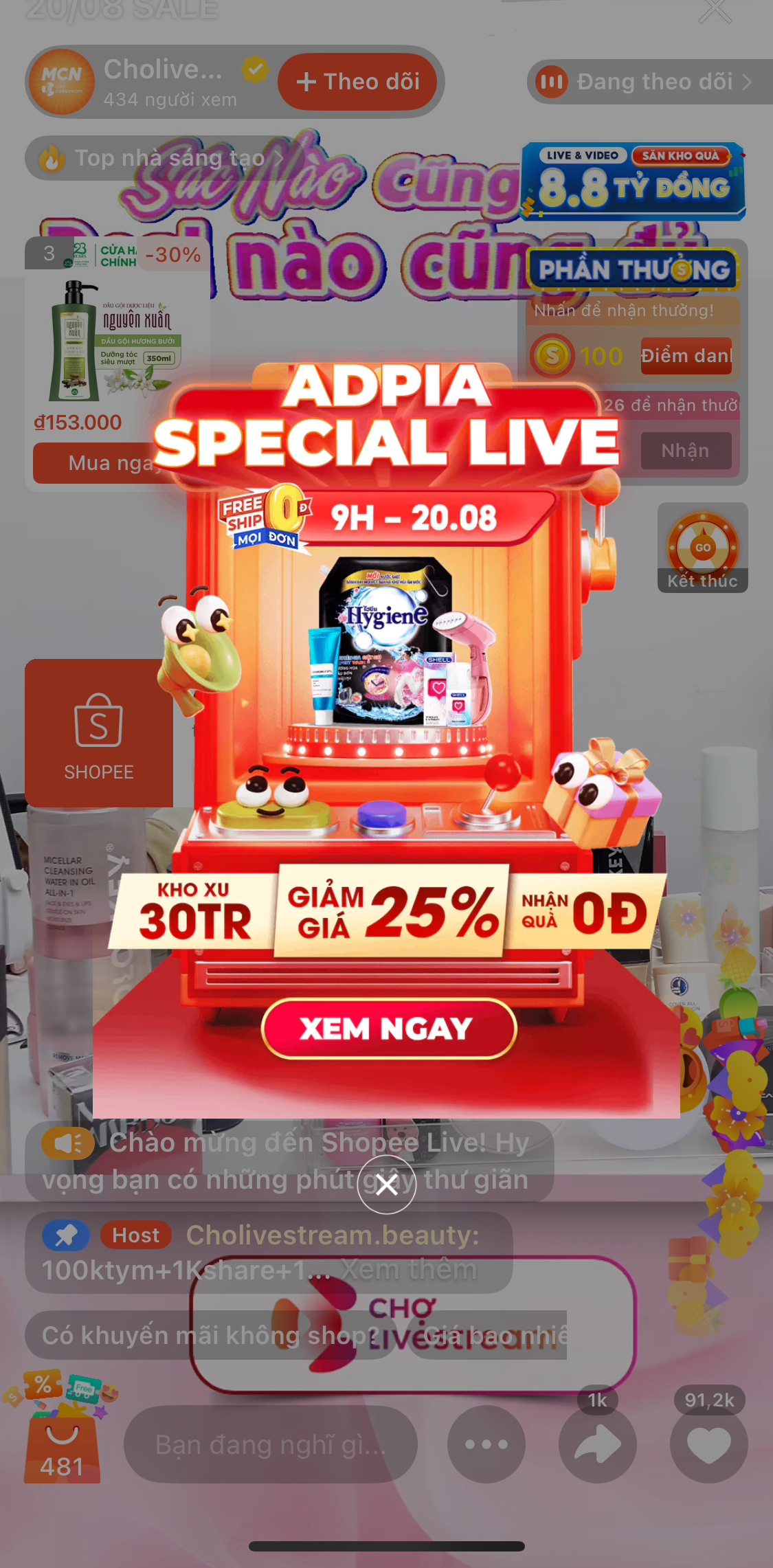 Voucher độc quyền MCN: Mã giảm giá 20-25% và tung Xu thưởng rơi liên tục trong phiên live.